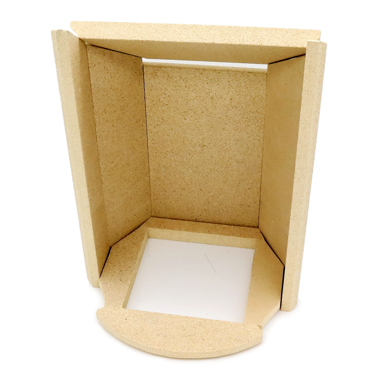 • 10-teilig, bestehend aus Bodensteinen, Seiten und Rückwandsteinen und Rauchumlenkplatte